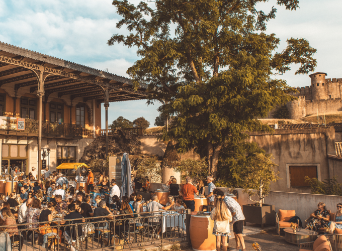 More than just a cellar, Le Comptoir de la Cité is a convivial place, with a wine bar on one of Carcassonne’s finest terraces! With a 180-degree view of the medieval city, the team invites you to come and join in the fun! Le Comptoir de la Cité is the ideal place to take a break and relax on the terrace, with a glass of wine and our menu of local produce to share. The summer season promises to be more festive, with a program of afterworks on Thursday evenings, as well as musical and themed evenings. Visit our Events tab to make sure you don’t miss out on any of our programming!